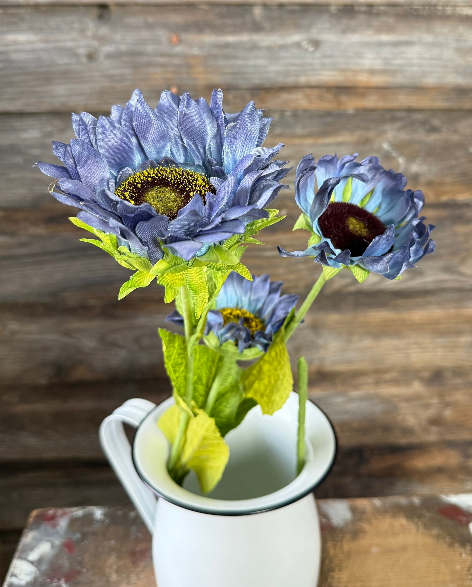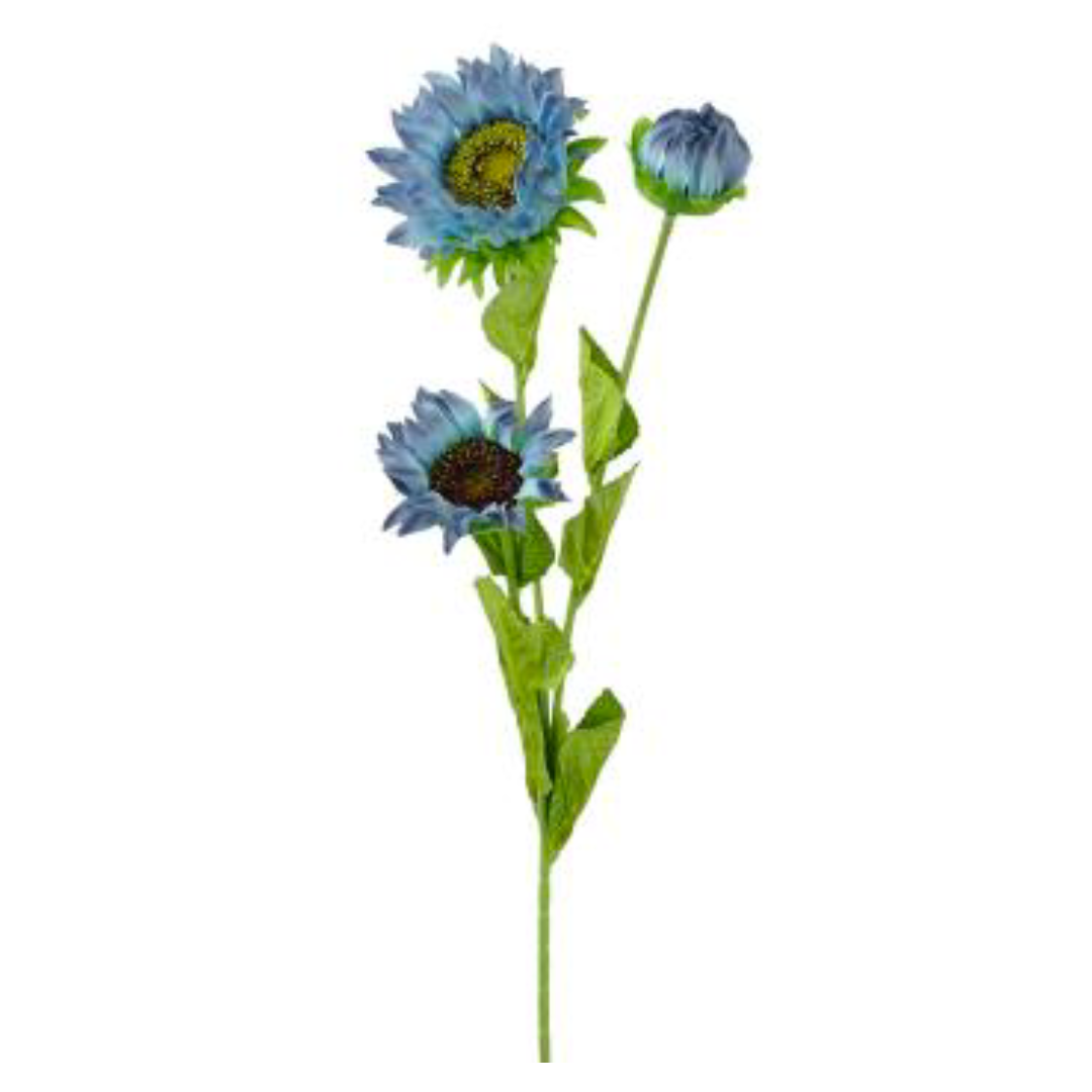 Sunflower Spray, 26", Blue, Single spray with 3 stems